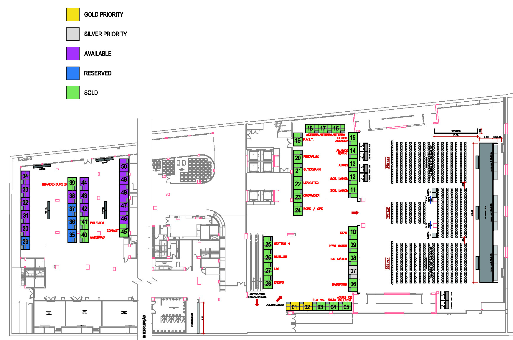 - Estrutura geral em alumínio anodizado colorido com 2,50m/2,35m de altura (dependendo dos diferentes espaços disponíveis)